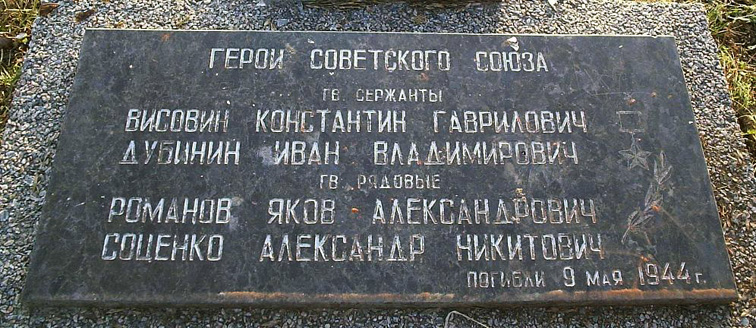 Подвиг гвардейцев, участников десанта, был высоко оценен командованием. За мужество и героизм, проявленные при освобождении города русской славы Севастополя, указом Президиума Верховного Совета СССР воинам-богатырям И. Дубинину, К. Висовину, А. Земкову, Я. Романову, А. Соценко присвоено звание Героя Советского Союза.