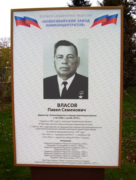 Власов Павел Семёнович – директор Новосибирского завода химических концентратов Министерства среднего машиностроения СССР.