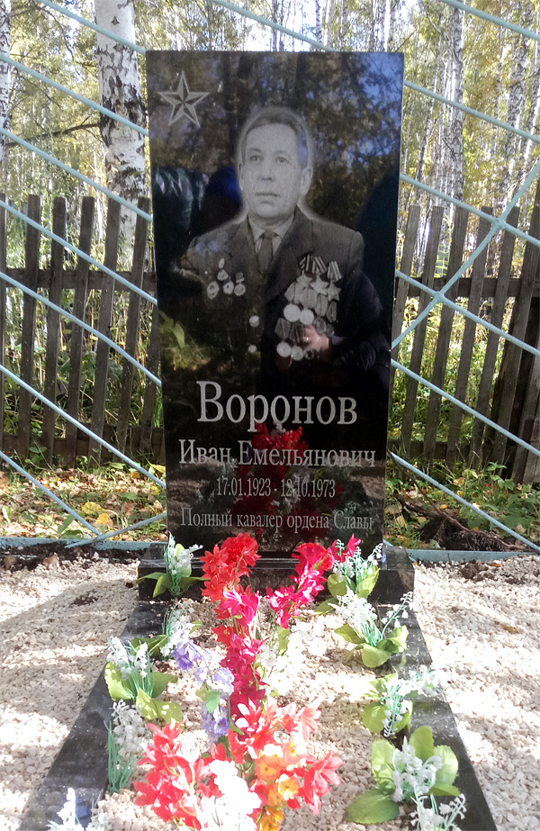 Воронов Иван Емельянович - командир расчета 82-мм миномета 361-го стрелкового полка (156-я стрелковая дивизия, 43-я армия, 1-й Прибалтийский фронт) старший сержант – на момент последнего представления к награждению орденом Славы.