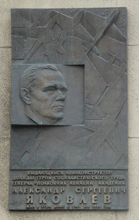 Яковлев Александр Сергеевич – советский конструктор авиационной техники, главный конструктор ОКБ №115 Наркомата авиационной промышленности СССР, город Москва; генеральный конструктор ОКБ №115 Министерства авиационной промышленности СССР, город Москва.