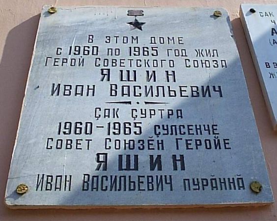 В городе Чебоксары, на фасаде дома № 11 по проспекту Ленина, где жил Герой, установлена мемориальная доска.