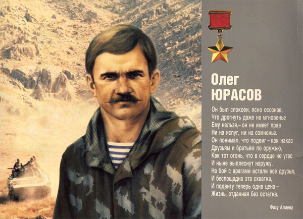Юрасов Олег Александрович - начальник штаба - заместитель командира 2-го парашютно-десантного батальона 345-го отдельного гвардейского Краснознамённого ордена Суворова третьей степени парашютно-десантного полка имени 70-летия Ленинского комсомола (ограниченный контингент советских войск в Демократической Республике Афганистан), гвардии майор.