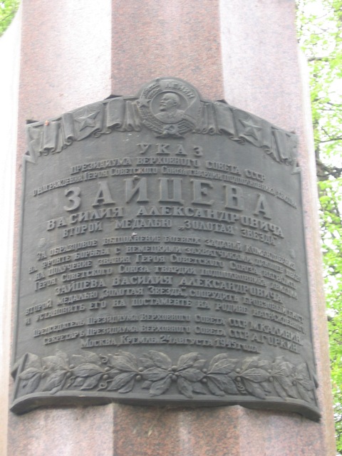 Указом Президиума Верховного Совета СССР от 24 августа 1943 года за образцовое выполнение боевых заданий Командования на фронте борьбы с иемецкими захватчиками гвардии подполковник Зайцев Василий Александрович награждён второй медалью "Золотая Звезда".