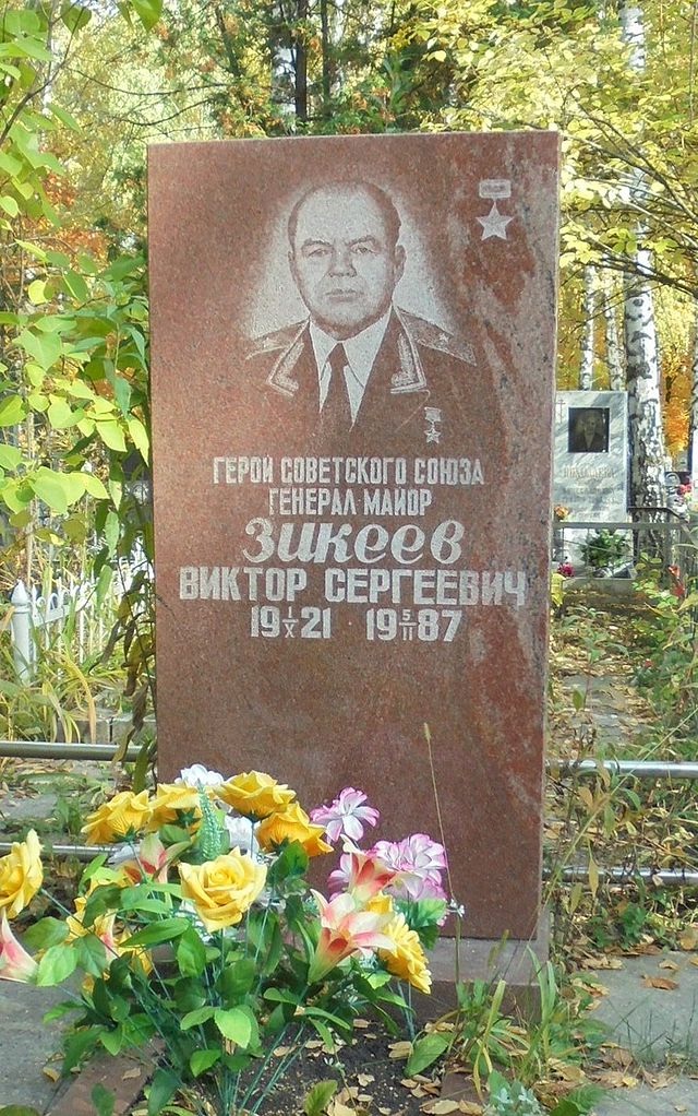 Командир батареи 1081-го артиллерийского полка 191-й стрелковой дивизии старший лейтенант Зикеев в боях под Киришами прямой наводкой своей батареей уничтожил и рассеял до 5 взводов пехоты противника. В боях под Грузино поддерживал 46-ю танковую бригаду, уничтожил 2 противотанковых пушки, 3 блиндажа, 4 станковых пулемета, до 50 фашистов. В районе деревни Мясной Бор шел на самые дерзкие вылазки и уничтожил до 130 солдат и офицеров, 7 станковых пулеметов. Дважды отбил на своем участке атаки противника. В районе Синявино, в боях по освобождению коммуникаций к Ленинграду, находясь все время на передовом наблюдательном пункте, корректировал огонь своей батареи, метко разил врага, уничтожив до 100 фашистов и много техники. Находясь на наблюдательном пункте, был 6 сентября тяжело ранен и отправлен в госпиталь. Заслуживает ордена Красного Знамени. Командир 1081-го артполка подполковник Алексеев